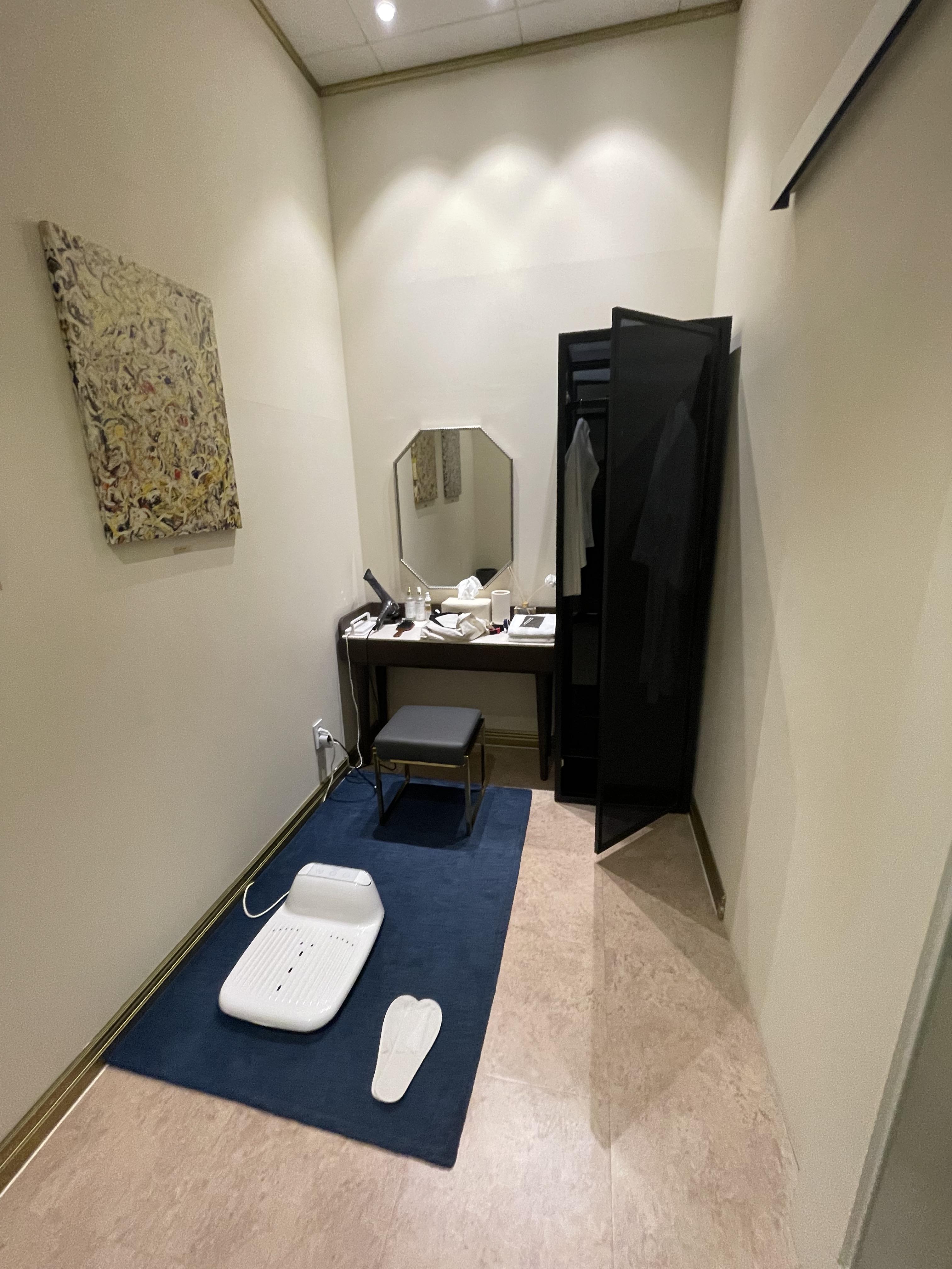 와, 이런 신박한 것이! 라고 느낀 건.. 아랫도리를 말릴 수 있게 하는 저 흰색 제습기 같은???? 신문물이었어요. 보습라인으로 마사지 받고 나오면 사실 좀 끈적한 느낌도 있는데 저 선풍기 같은 것이 아주 몸을 쾌적하게 해 줬답니다. :)